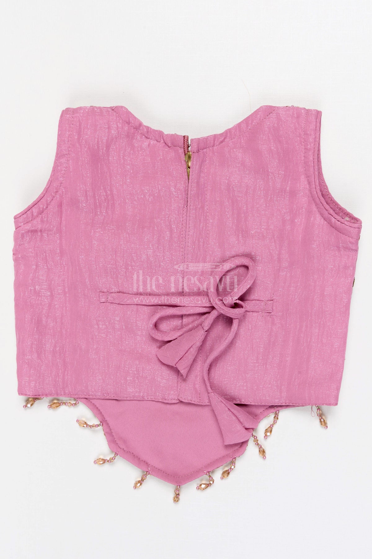 • ஸ்லீவ்லெஸ் எம்பிராய்டரி செய்யப்பட்ட மேற்புறம், விரிவான கைவினைத்திறனுடன் ஒரு பாரம்பரிய பண்டிகை உணர்வை சேர்க்கிறது.