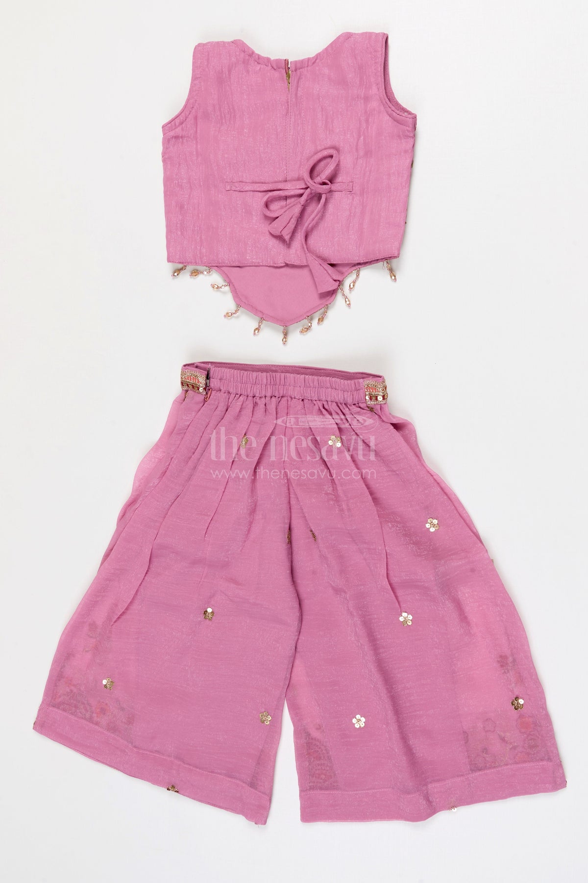 The Nesavu Girls Sharara / Plazo Set Girls Designer Sharara Set for Wedding Receptions Nesavu Nesavu Girls Georgette Sharara Set With Designer Embroidery For Wedding Receptions And Festive Events