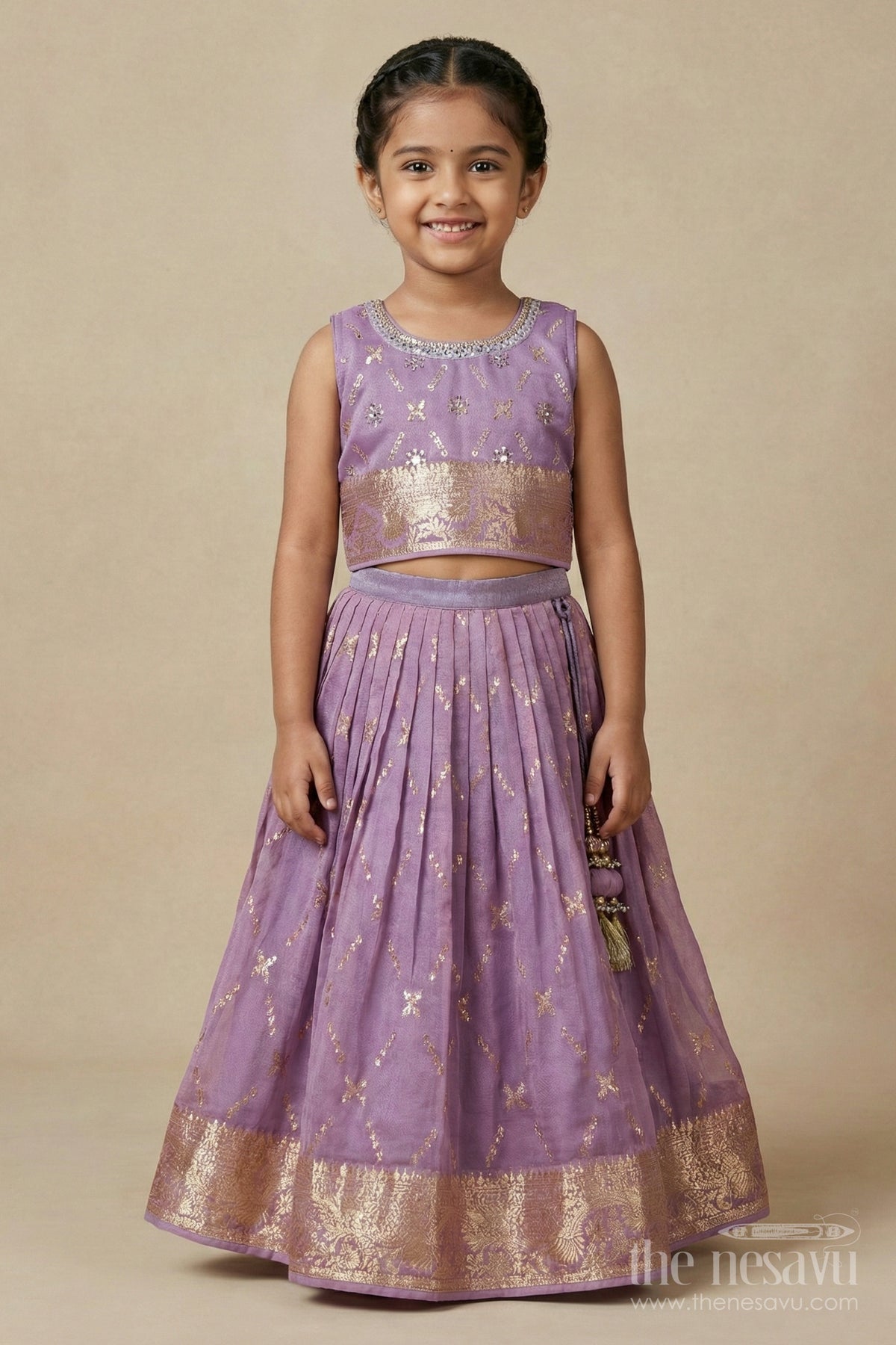 The Nesavu Girls Lehenga Choli Girls Lehenga Choli for Birthday Celebrations and Festive Gatherings Nesavu 16 (1Y) / Purple / Viscose Silk GL855B-16 Nesavu girls lehenga choli for birthdays and festivals with zari border and tassel dupatta