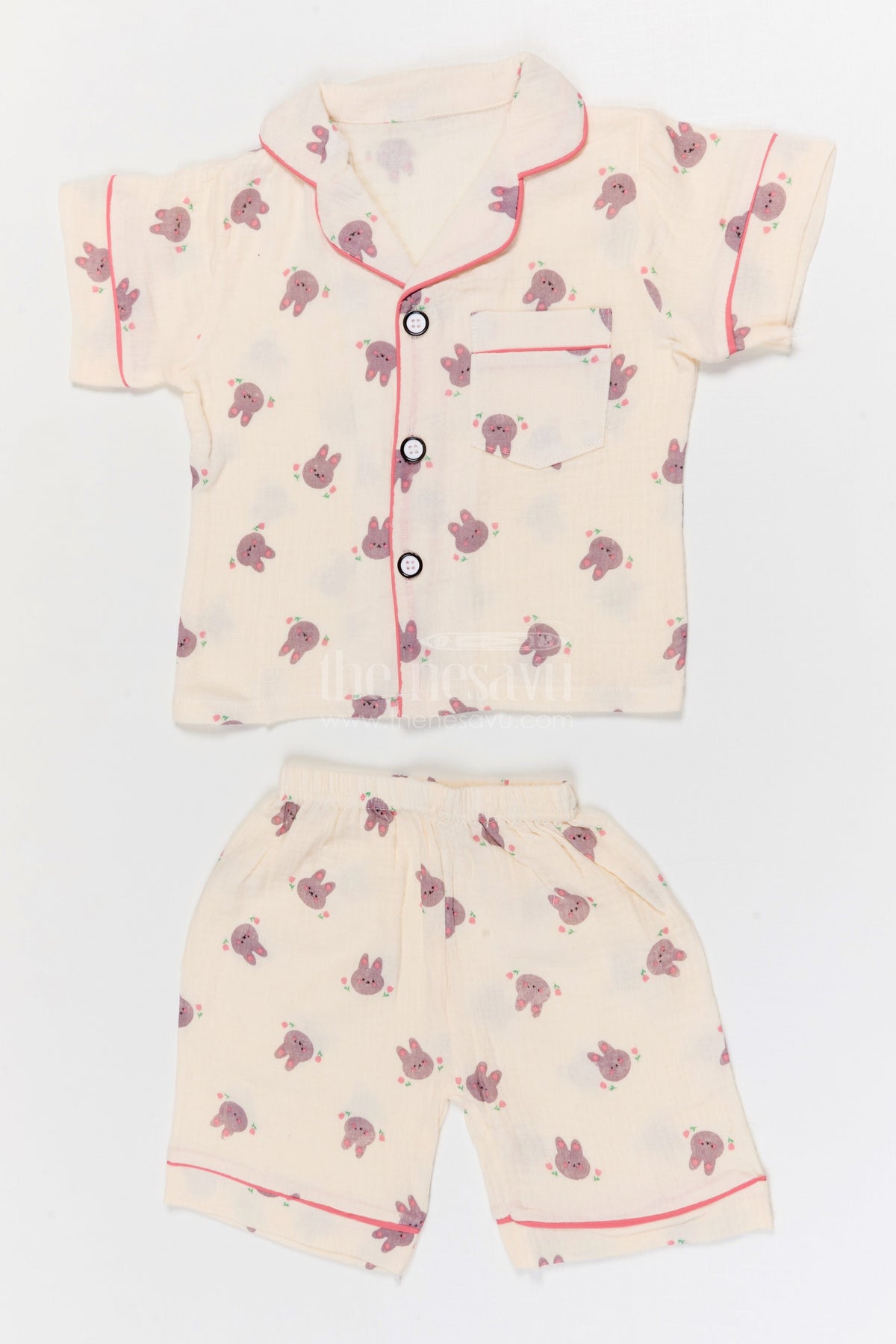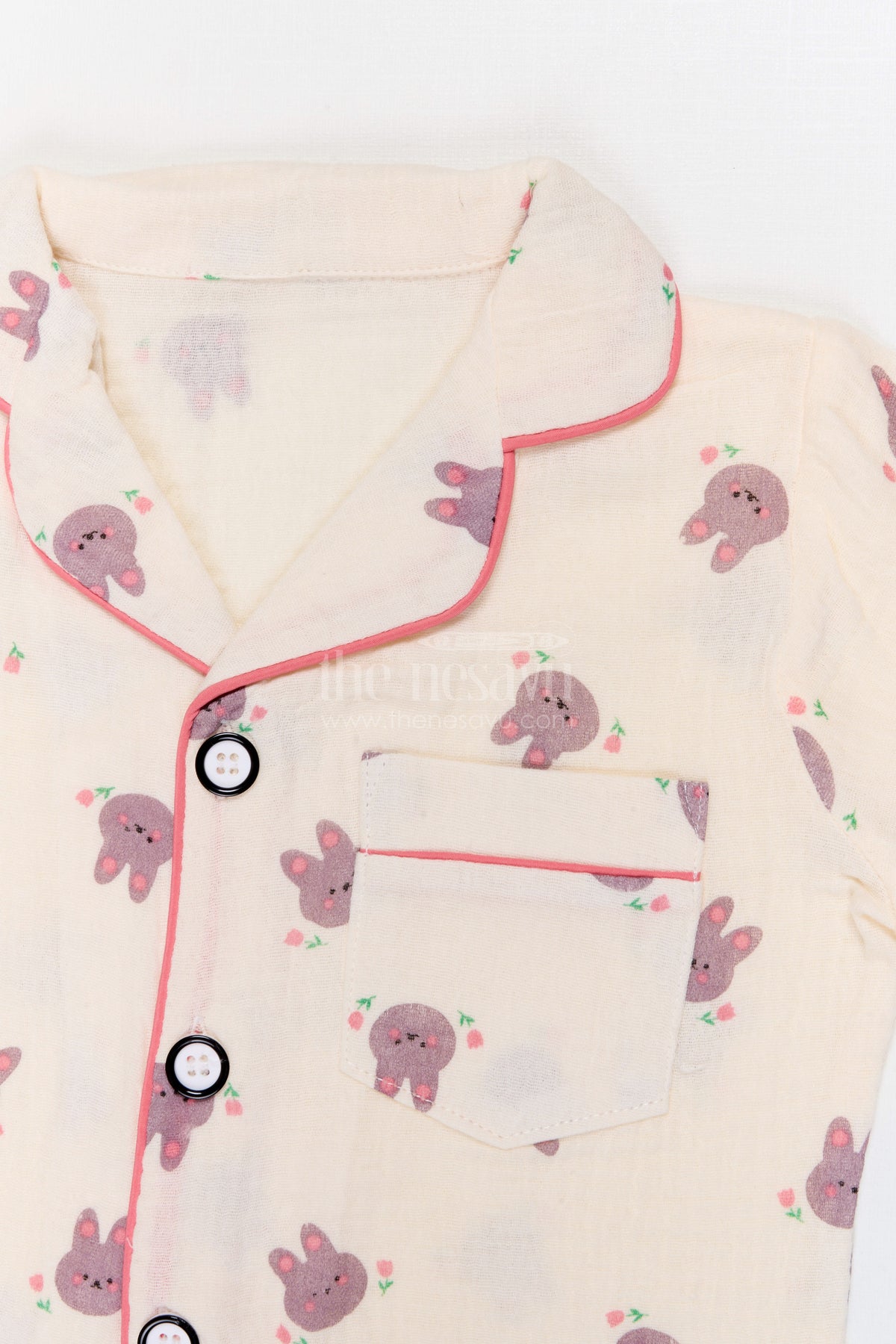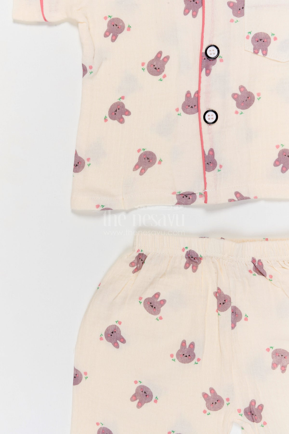 படுக்கை நேரத்திற்கான பன்னி பிரிண்ட் கொண்ட கிட்ஸ் காட்டன் நைட் சூட்