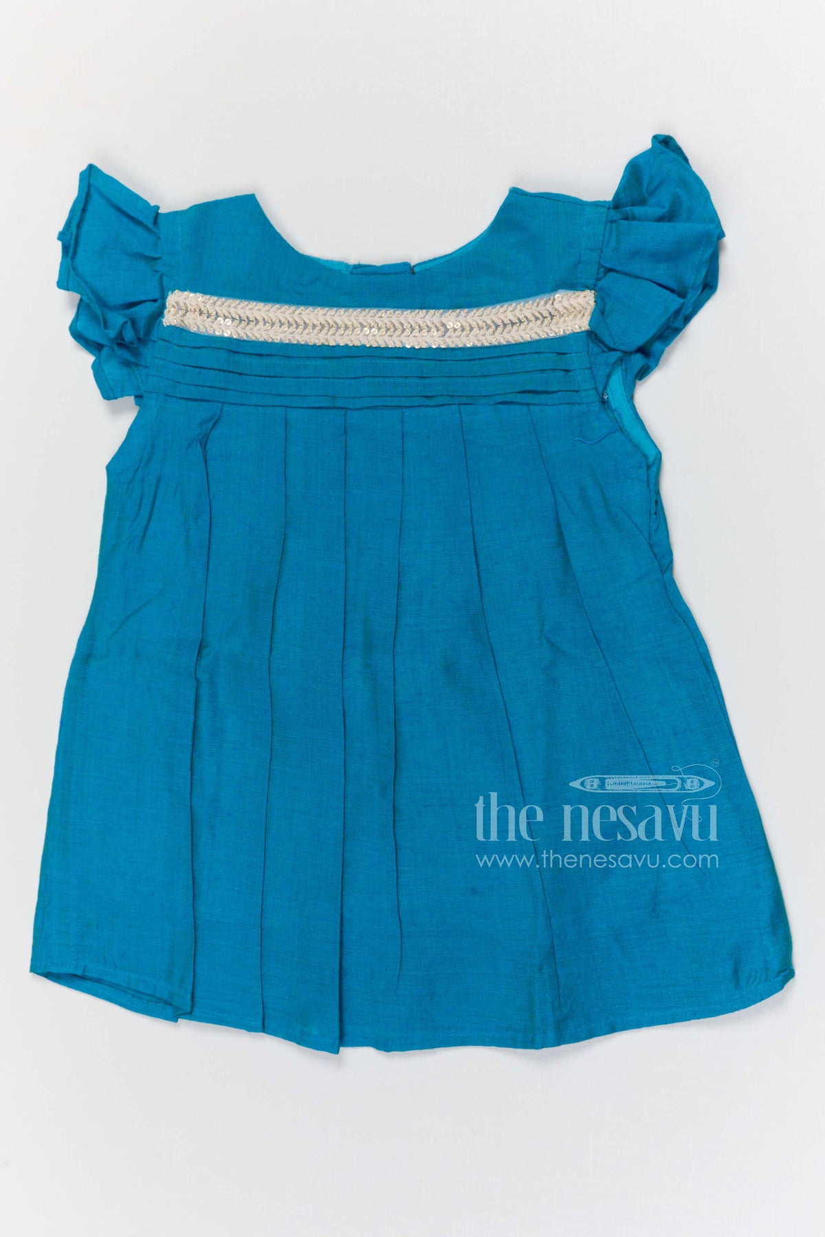 - இந்த சின்னஞ்சிறு பெண் சந்தேரி பருத்தி ஆடை எளிமையையும் பண்டிகை நேர்த்தியையும் கலக்கிறது.